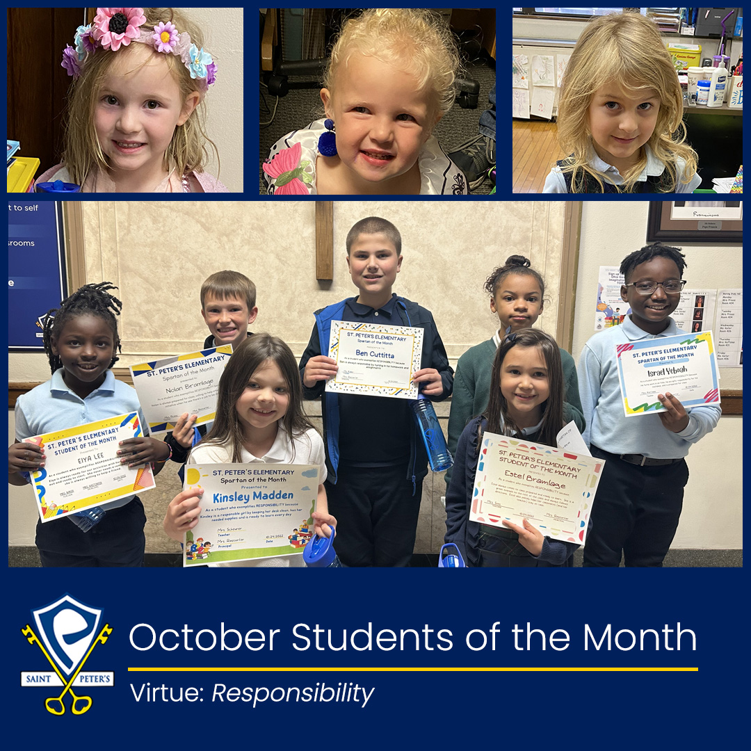Congratulations to our October Students of the Month. These students were recognized for displaying the virtue of responsbility.