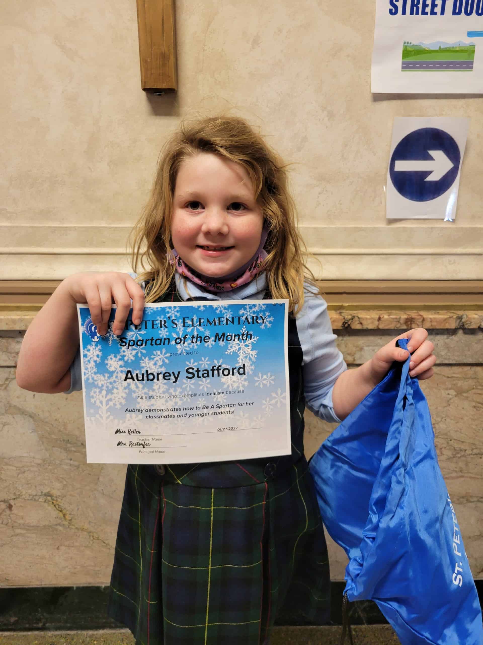 Spartan of the Month and the virtue program coincide with our Positive Behavioral Interventions and Supports (PBIS) program. “Be a Spartan” includes school-wide expectations, and students are expected to “Be safe, Be Respectful, and Be Responsible” Spartans every day.